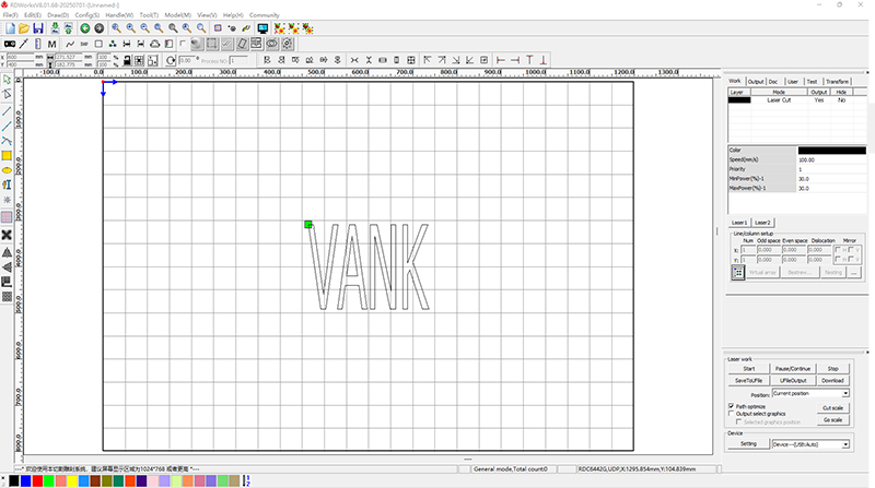 Formatos compatibles (PLT / JPG / DXF / DST)El software de control está basado en el sistema operativo Windows y es compatible con diversos formatos de archivos de procesamiento comunes. Incluye funciones habituales de edición y maquetación, así como funciones específicas de control y procesamiento láser. |